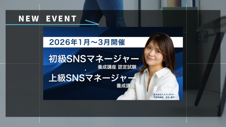 Fumi こんにちは!炎上対策から戦略立案までの”SNSのプロ”を目指す方は必見の、「SNSマネージャー認定資格」について、詳しくお話します! 2016年1月~3月のスケジュールも掲載しています! 「SNS担当になったけれど、何を基準に投稿すればいいかわからない」 「独学で運用しているが、成果が出ているのか自信がない」 「万が一の炎上リスクに、組織としてどう備えればいいのか不安…」 いまや企業のマ […]