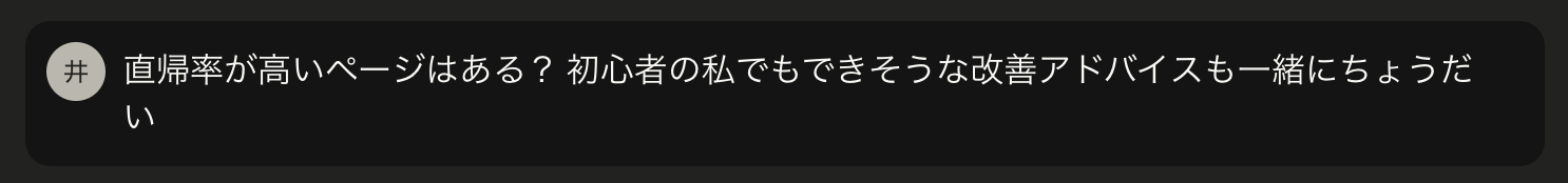 「直帰率が高いページはある? 初心者の私でもできそうな改善アドバイスも一緒にちょうだい」と入れてみましょう。